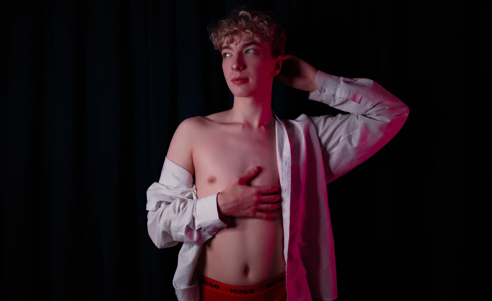Blonde guy cumming and show armpits
